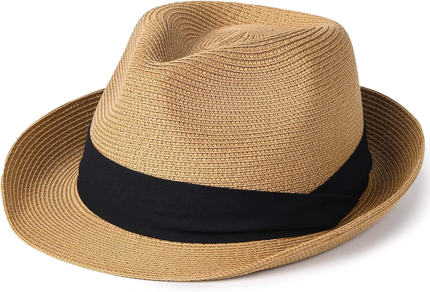 Qwzndzgr Fedora Straw Sun Hat For Men Women Foldable Roll Up Short Brim Trilby Hat Panama Beach Hat Upf 50 Walmart Com